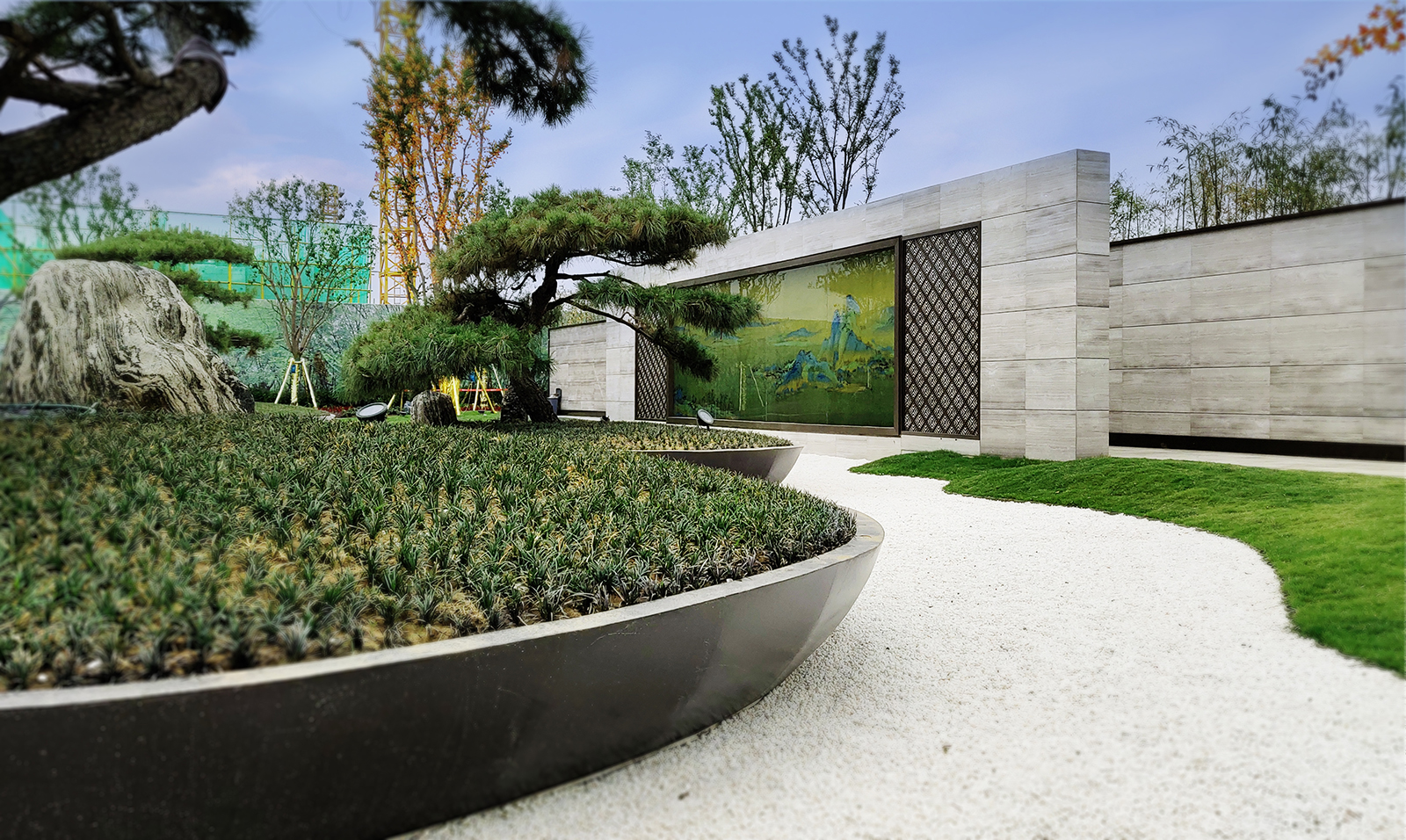 本案私園內(nèi)布置小而精的藝術(shù)性的小品,