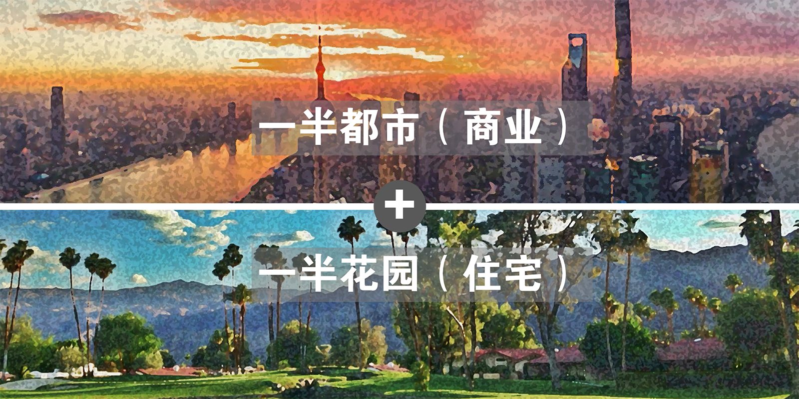 設計理念:依據建筑風格與布局,設計提出一半都市、一半花園的設計理念。