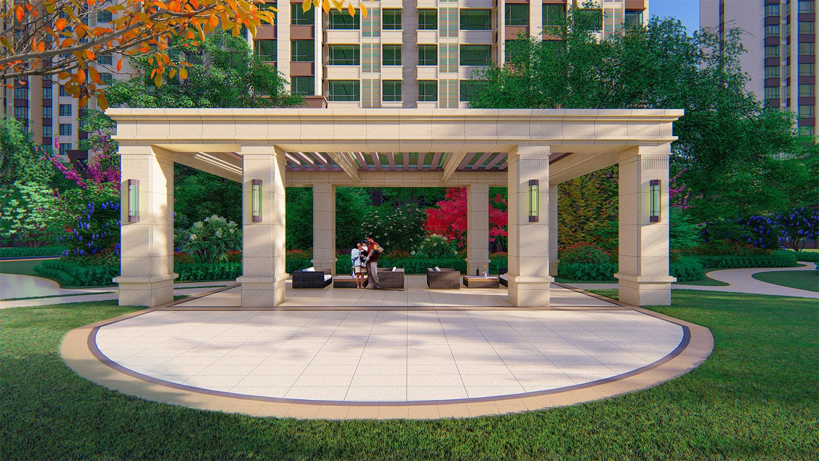 林蔭與步道結合的圍合成一片靜幽的歸家空間,漫步于林蔭之下,清風徐來微微涼, 為住戶提供宅前一片休憩的愜意空間,樹影婆娑,悠然自得。